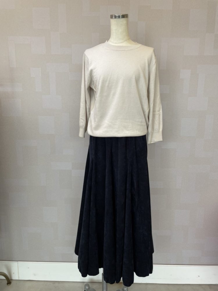 私も今日は同じ細コールテンスカートのオフホワイトで出勤。愛用です💗