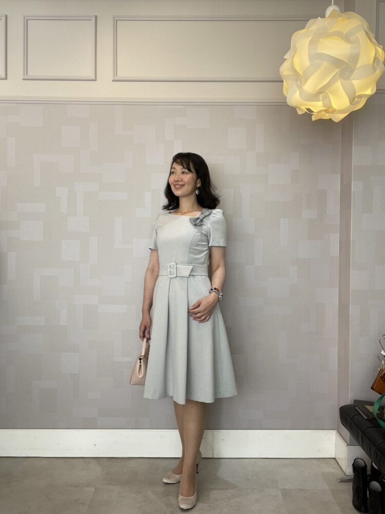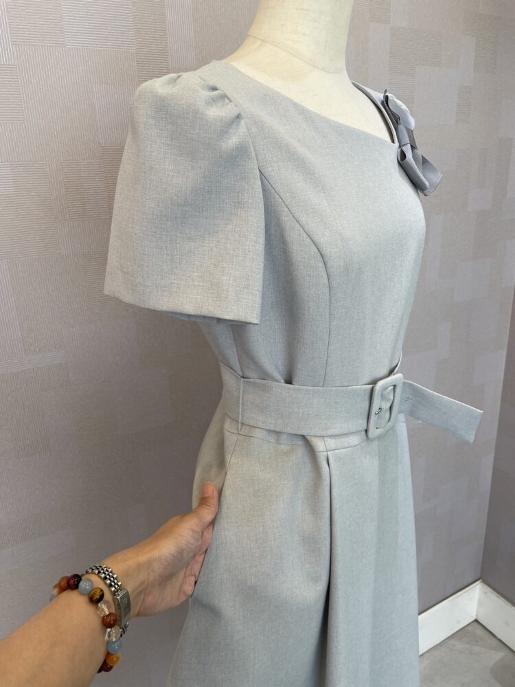 上品なリボンワンピース グレー