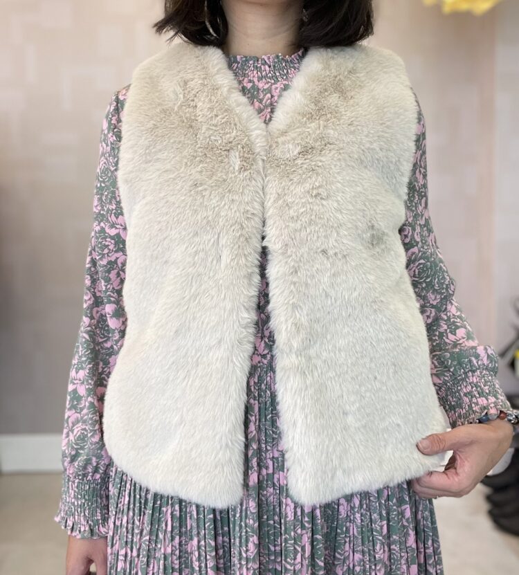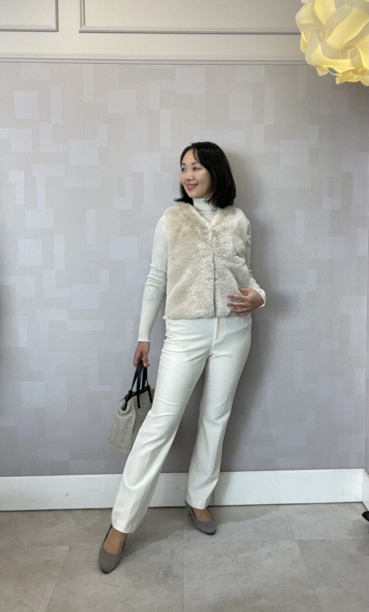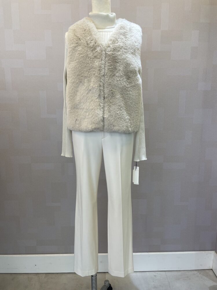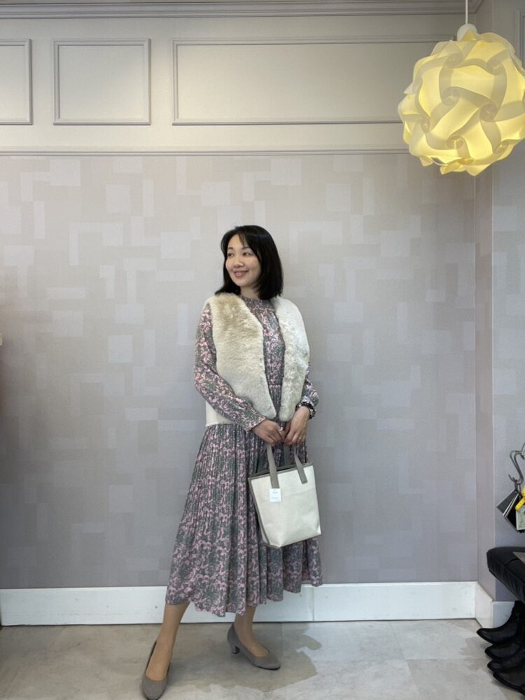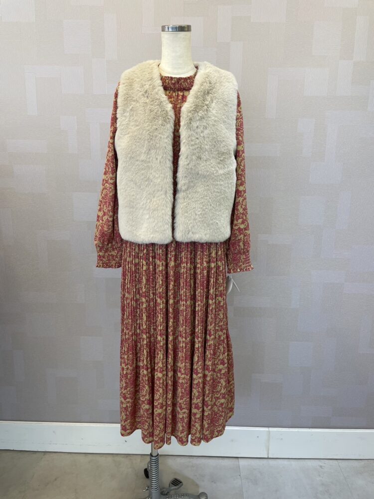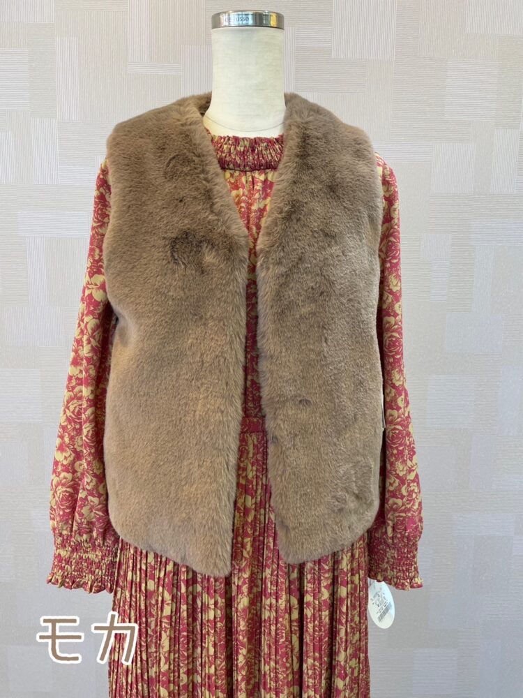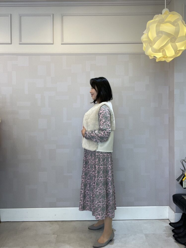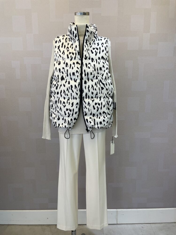 パッと目を惹く柄のダウンベストも本日入荷♫