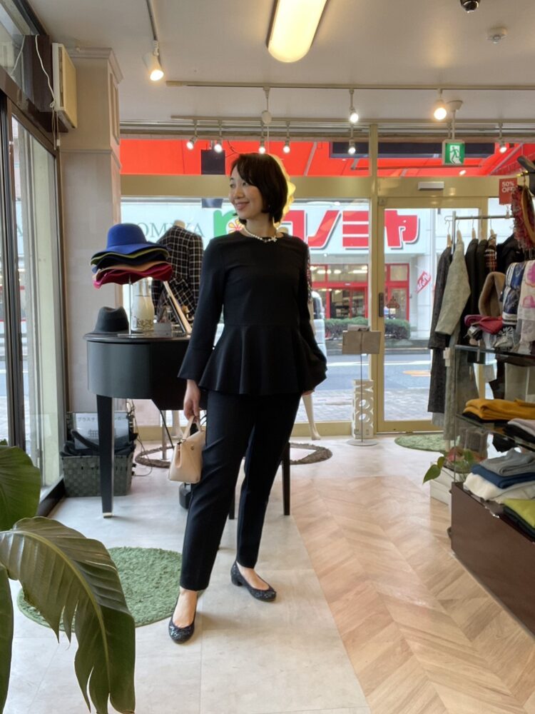 パプラムブラウスとすっきりパンツのセットアップ