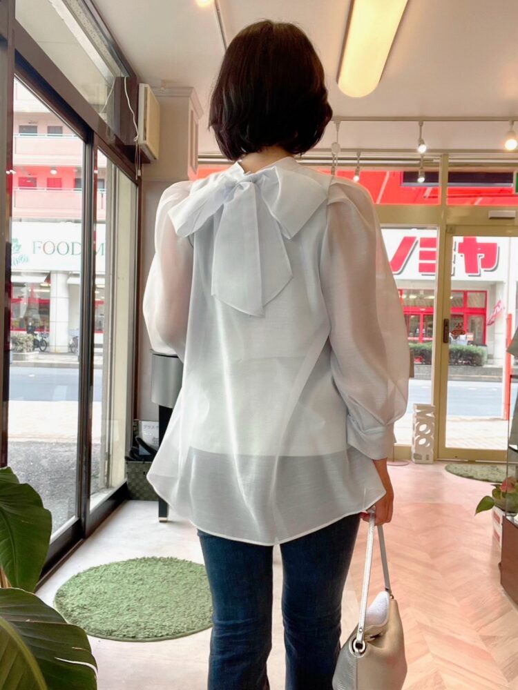 後ろ大きめリボンのシアーブラウス