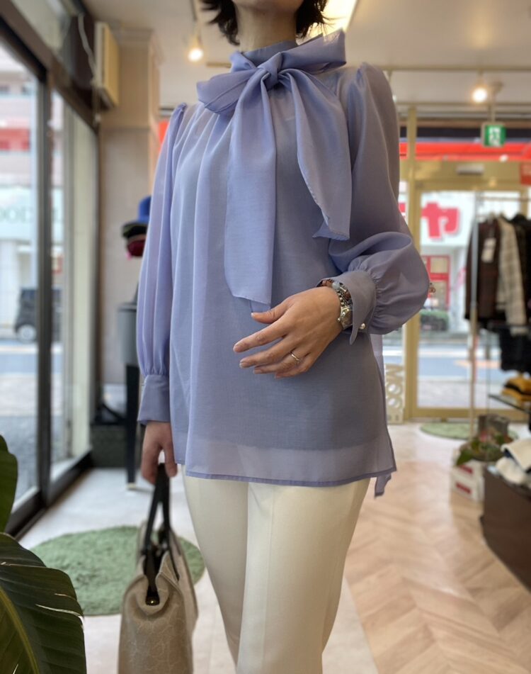 そして、先日入荷しましたとアップした大きめリボンのシアーブラウス