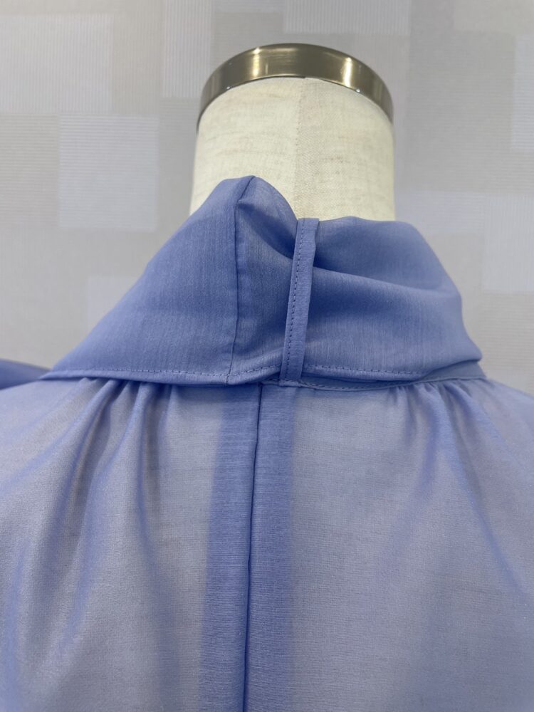 上品なデザインのラベンダーブルーのブラウス