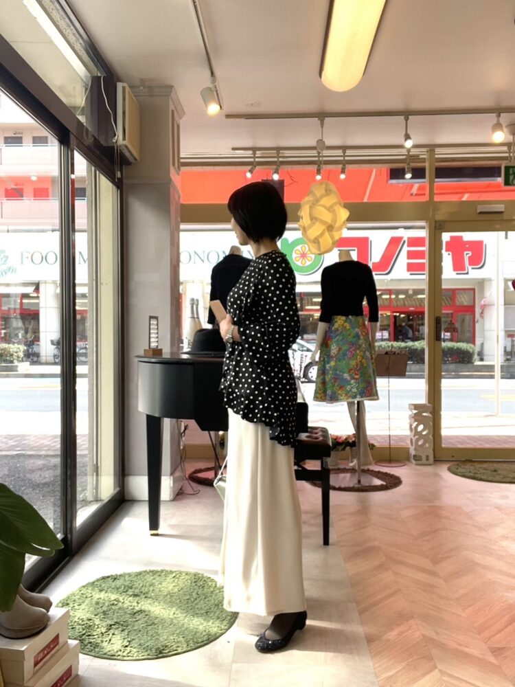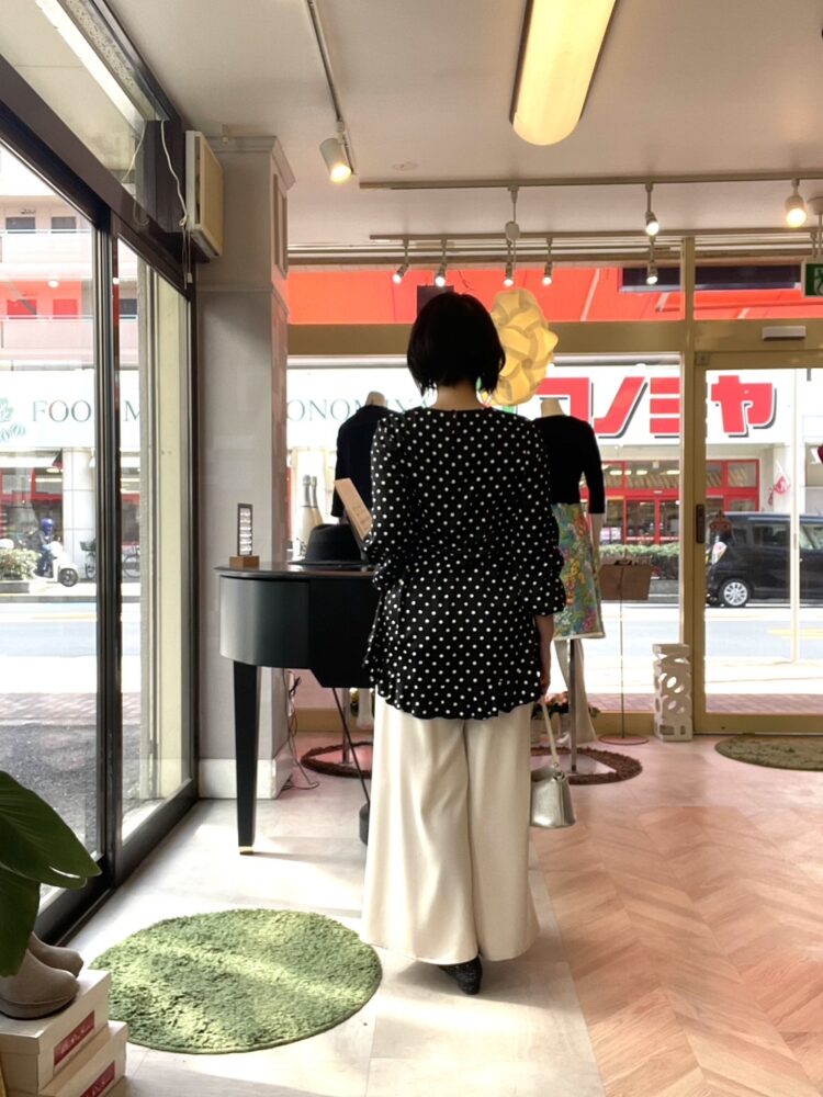 合わせたドットブラウスも新作
