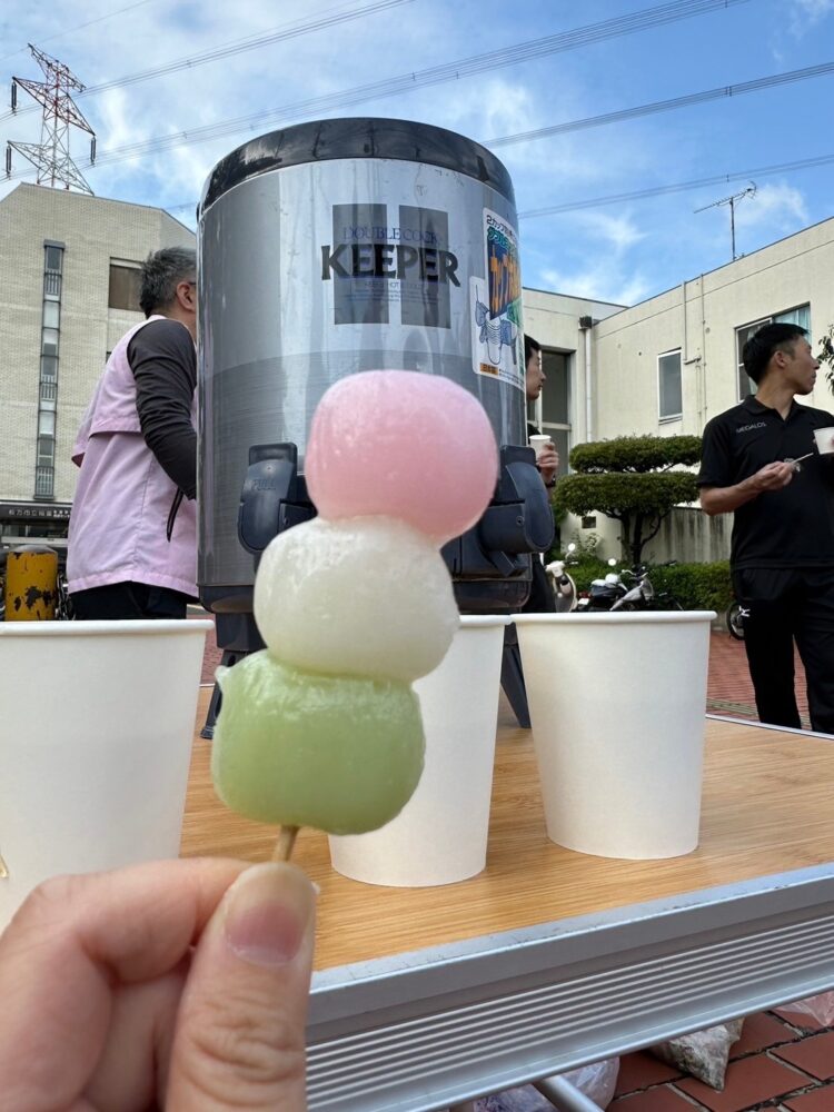清掃後は、出来立てホカホカのお団子とお茶で交流です。