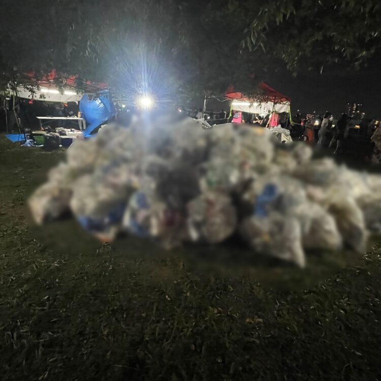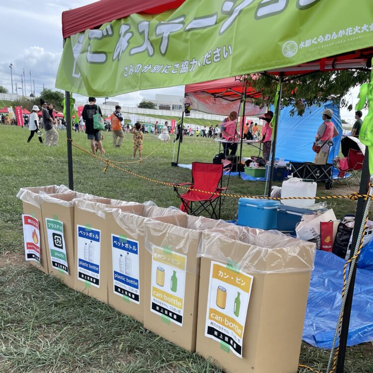 中央会場の大きな木の下がゴミステーション