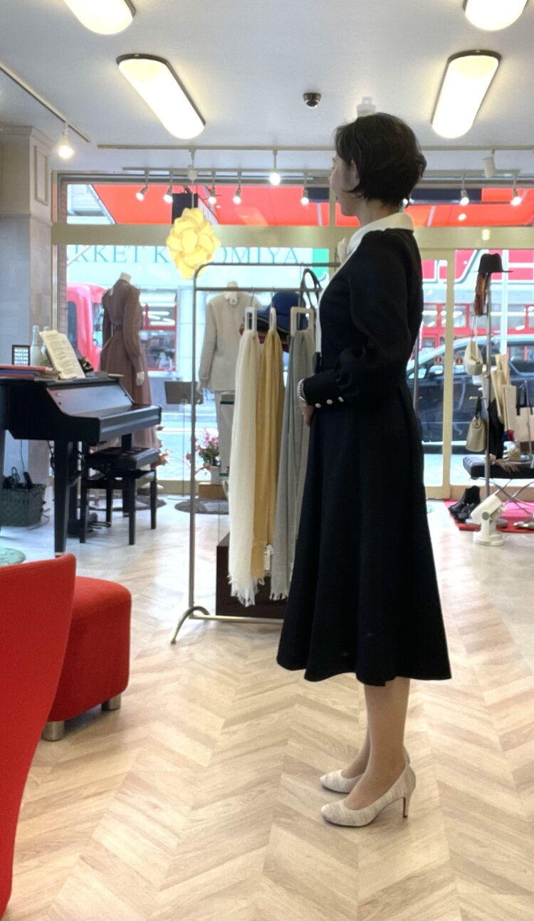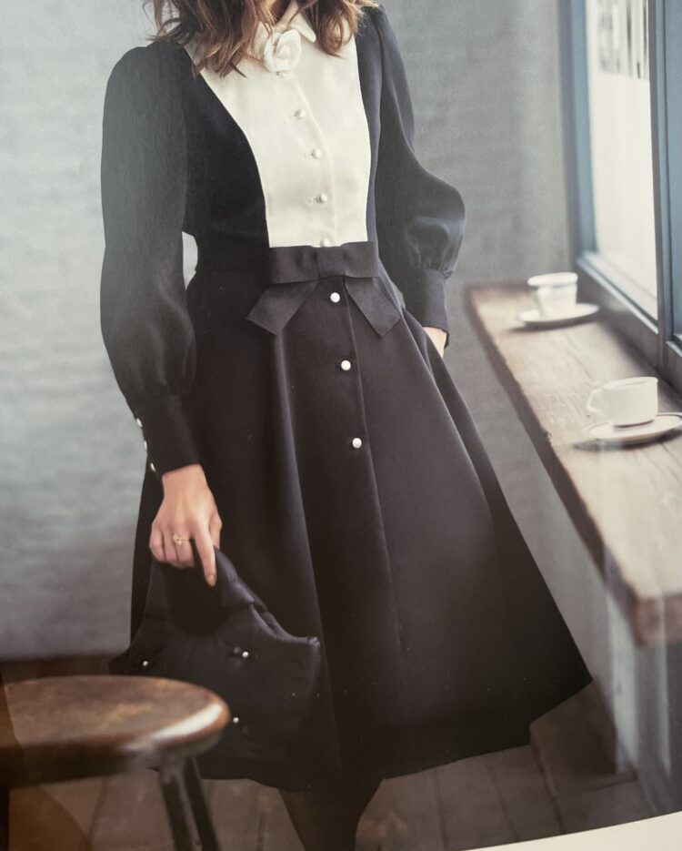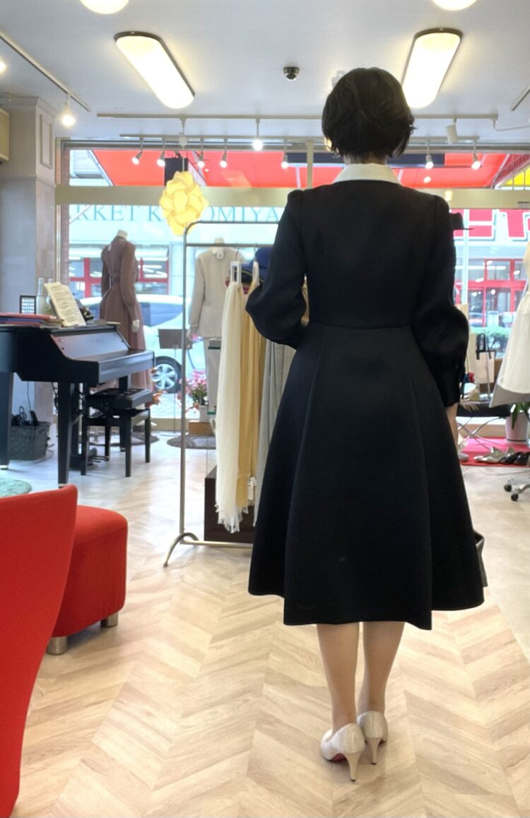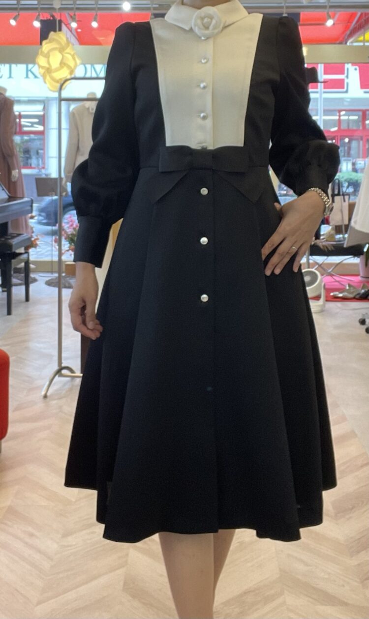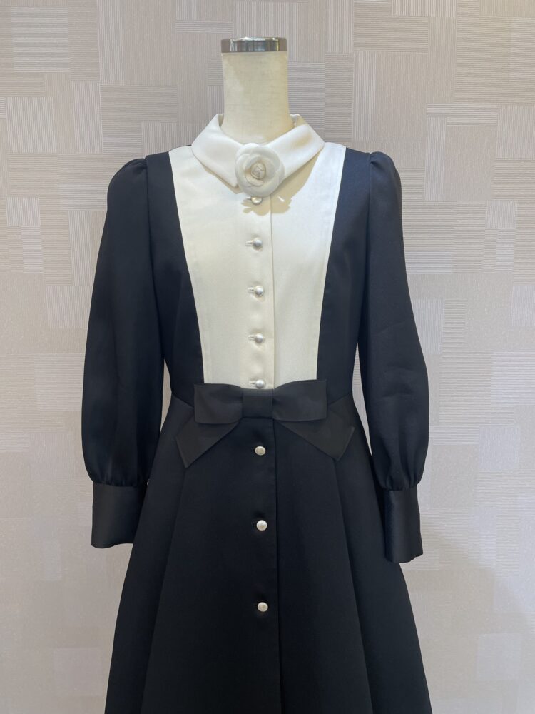 映えるモノトーンワンピース コサージュ付き ¥62,700(税込)