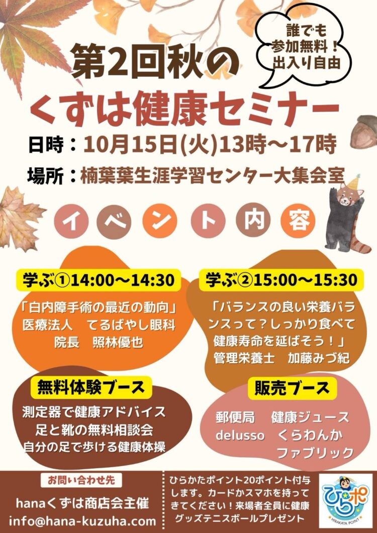 2024年10月17日 / 最終更新日時 : 2024年10月17日 delusso ストール トミー 第二回くずは健康セミナー 【第二回くずは健康セミナー】 を開催しました。 セミナーでは、質問もあり、個別で相談される姿も。 体験ブースも賑わい、「店を知ってるけど入ったことないわ〜」との声もあり、 地域の交流となっていました。 よく病院の診察予約の行列を見かけます。 みんなが、普段できる知識を持ち予防できれば、 〇地域の方が元気に! 〇地域の街も元気に! 〇商店も元気に!