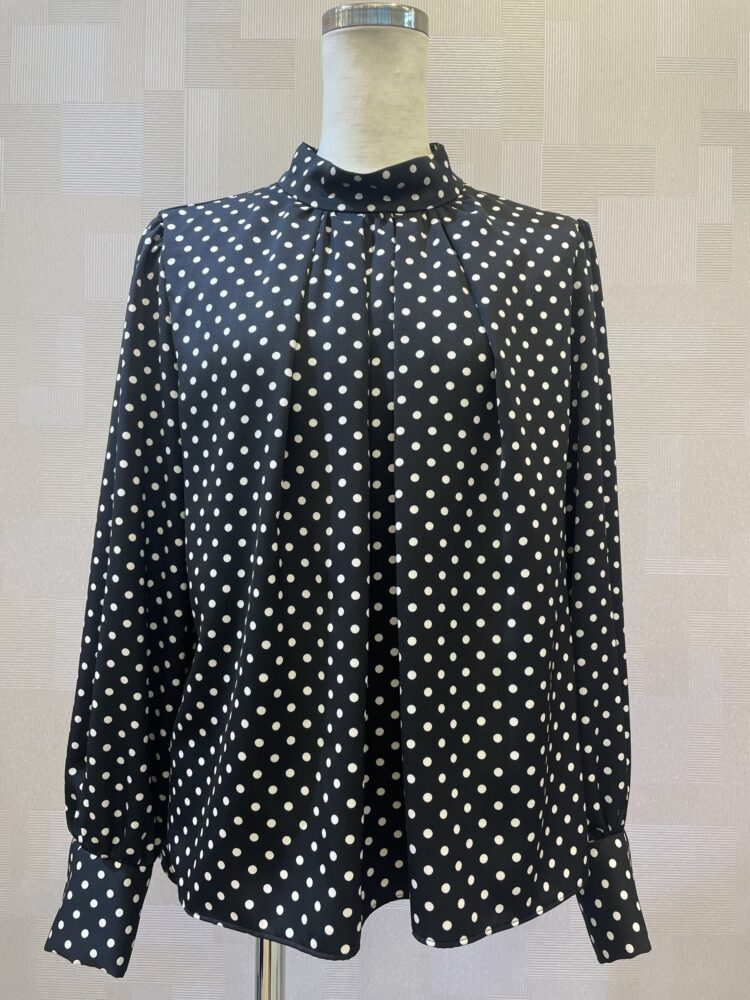 肩紐がずれないジャンスカ ドット柄ブラウス 仕事にも