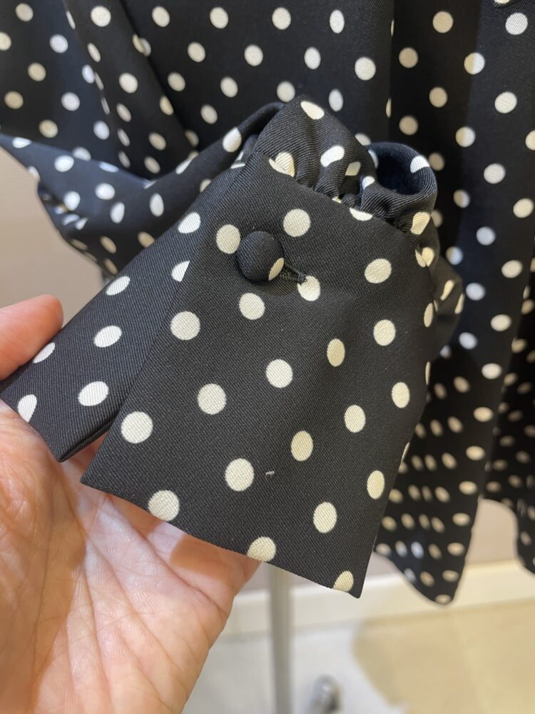 合わせたブラウスはリボン付きドットブラウス