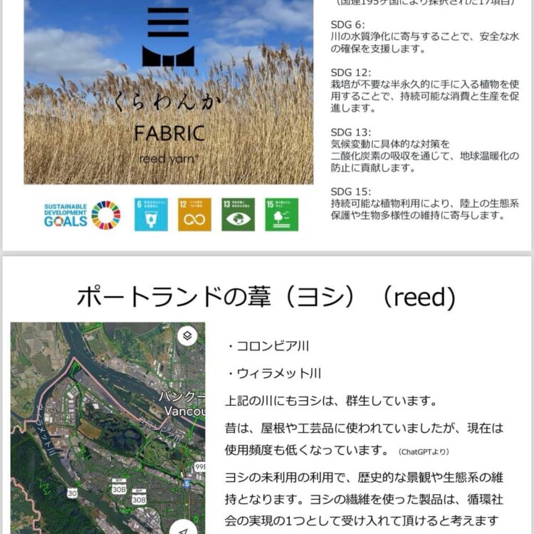 大きな河川が2つあり、葦も群生している。という事で、葦を利用して作られた「くらわんかファブリック」を連れて行って頂きました。
