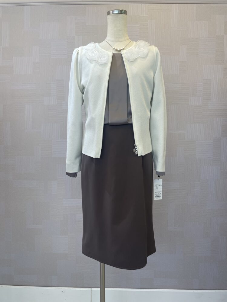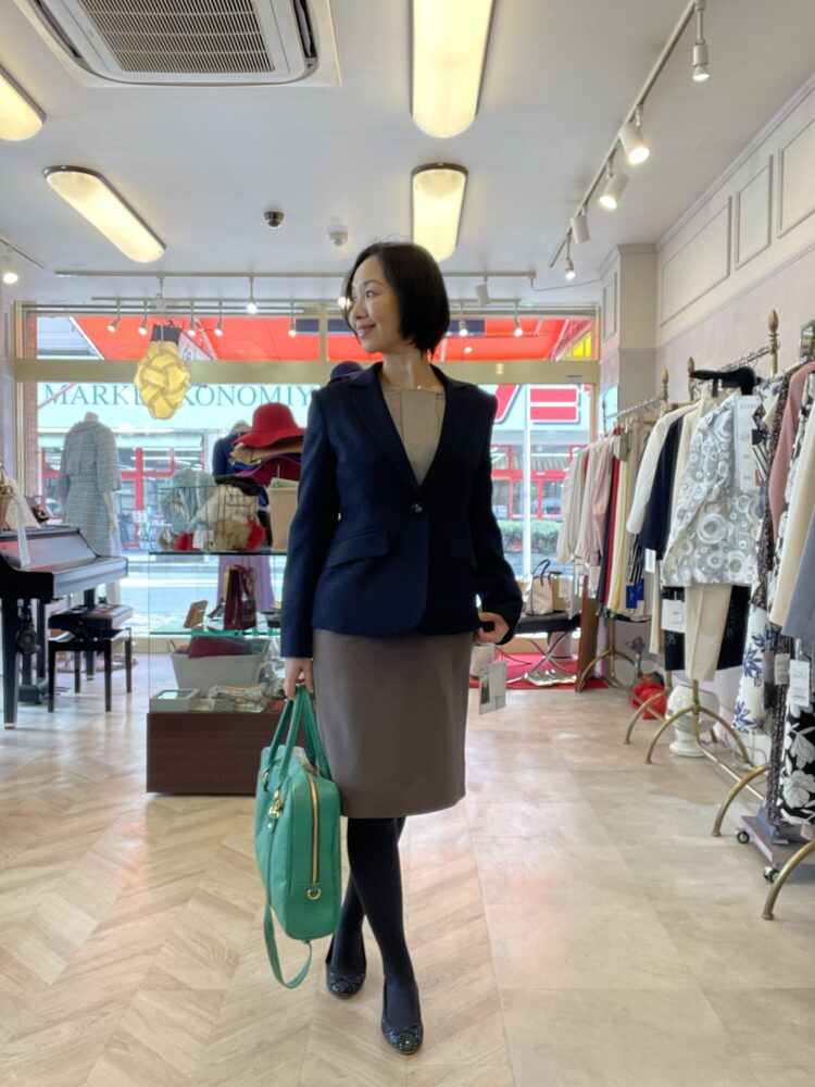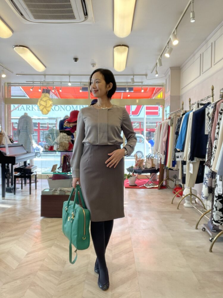 ↑こちら、ジャケットの中はブラウス、ボトムにスカートを合わせているように見えますよね