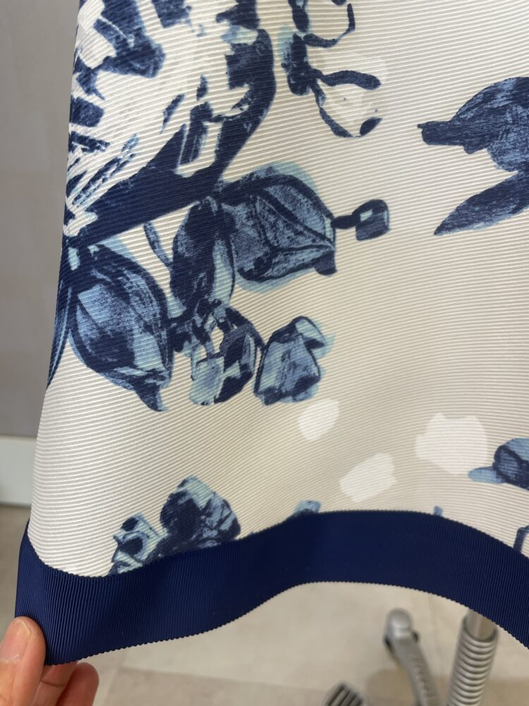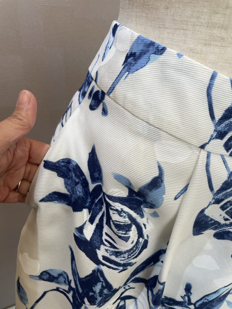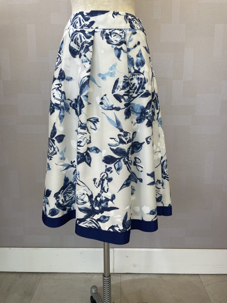 ◯白×ブルー 華やかローズ柄スカート ¥30,800