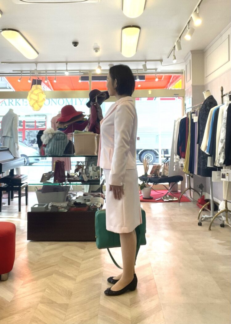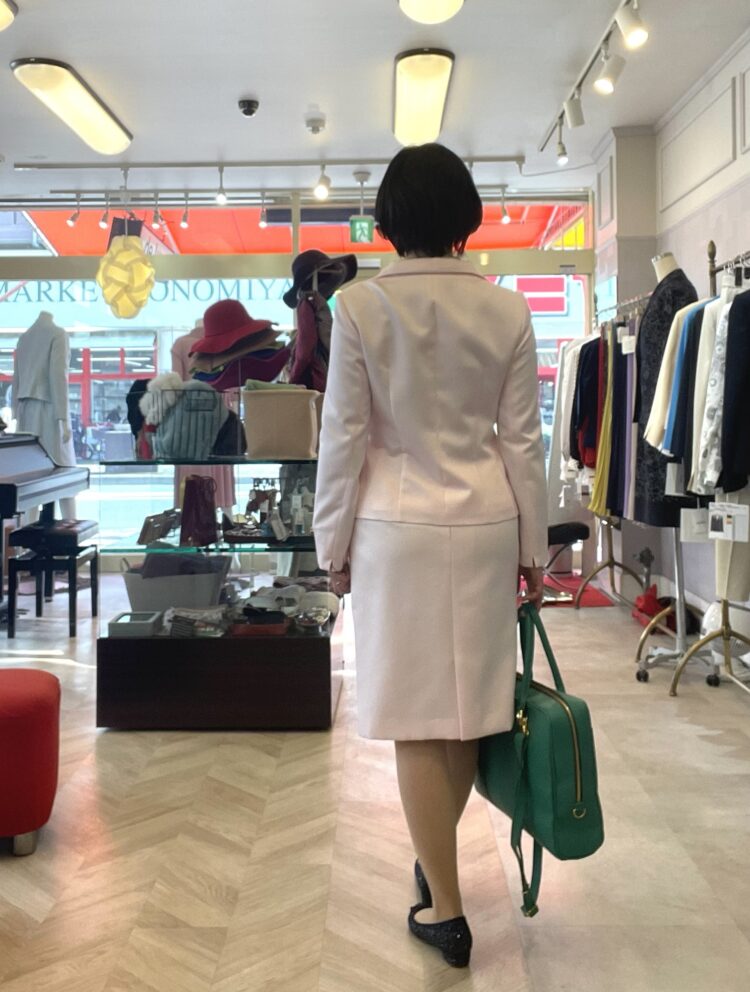 優しいピンクのスーツ