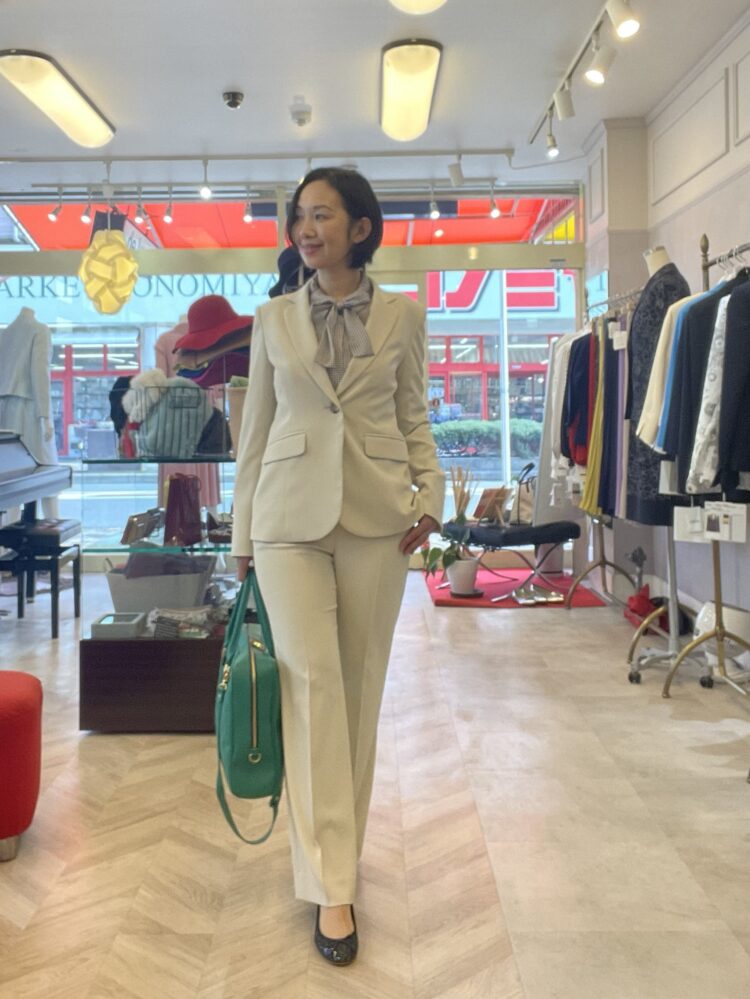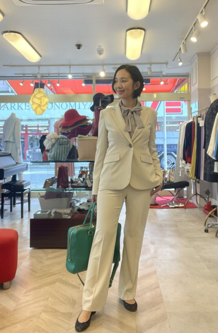 女性のスーツは繊細な美しさがデザインに込められていて