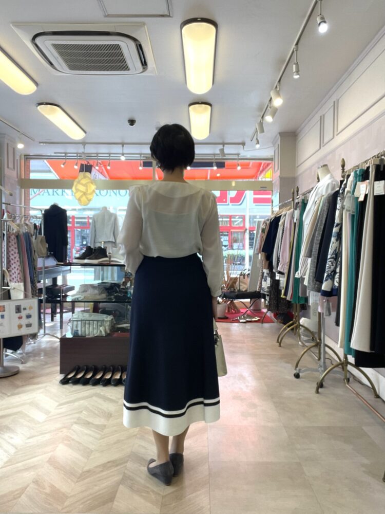 ヒップから下が広がるシルエットでラインがすごくきれいです