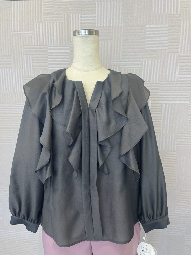 上品な透け感とエレガントなフリルが素敵なブラウス