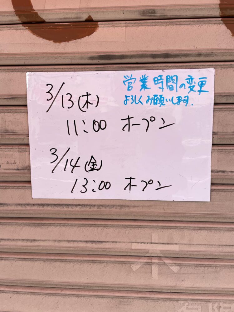 3/13(木)11時オープン