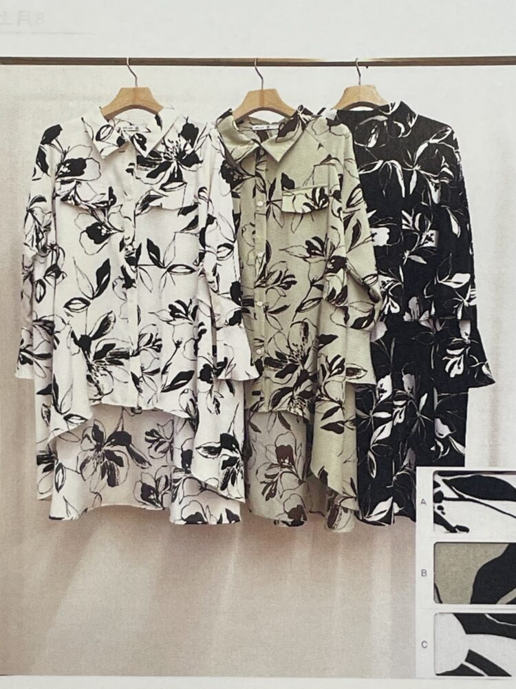 フロントラッフル 柄ブラウス