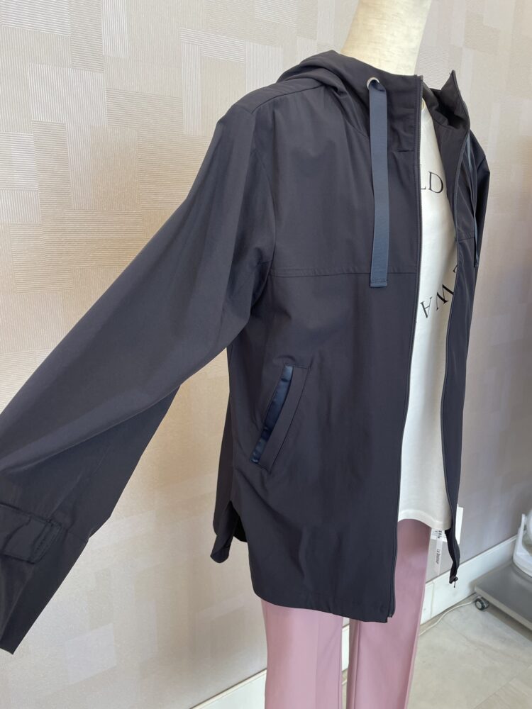 カジュアル感控えめ、フードの紐がグログランテープでエレガント
