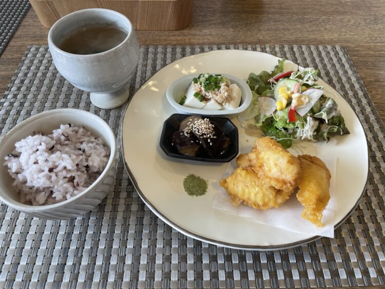 赤米(黒米?)と白米のハーフ&ハーフのご飯も嬉しい