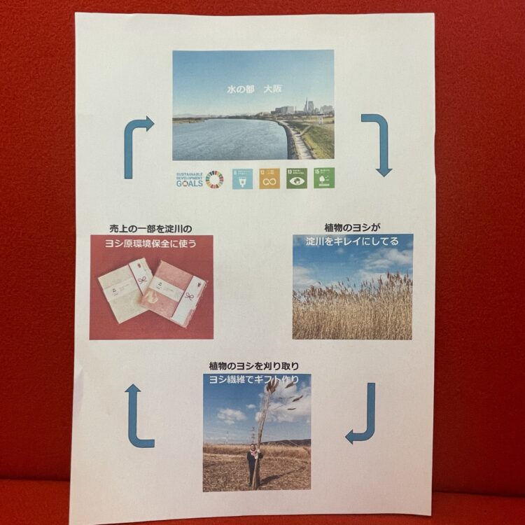 商品として販売した利益の一部を淀川の環境保全を使う。循環する商品となっています。