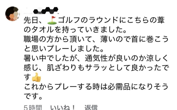 このような感想を頂きました。ゴルフのプレーでは、夏の暑さ対策も大切。