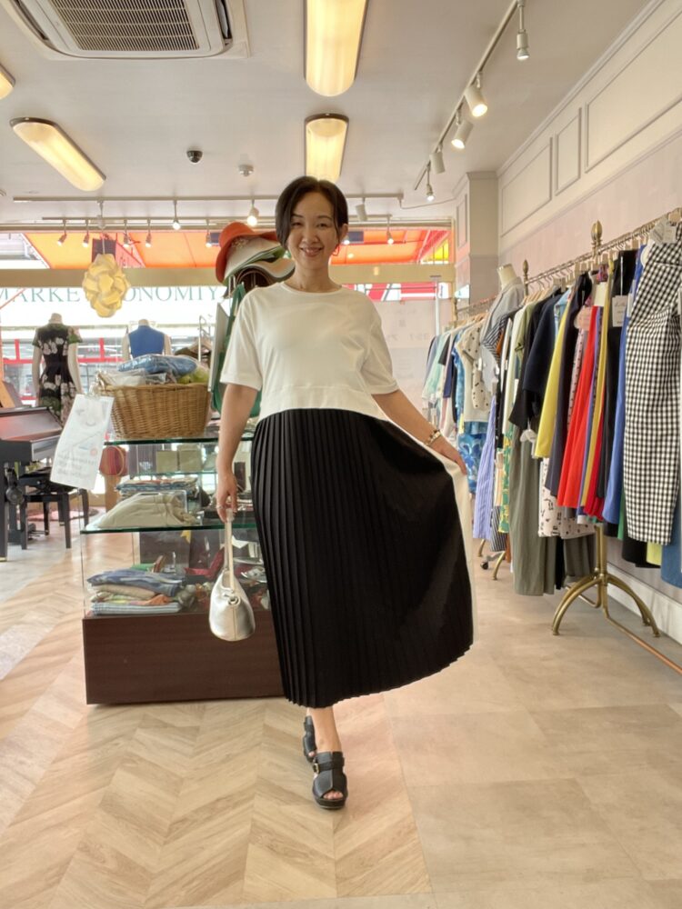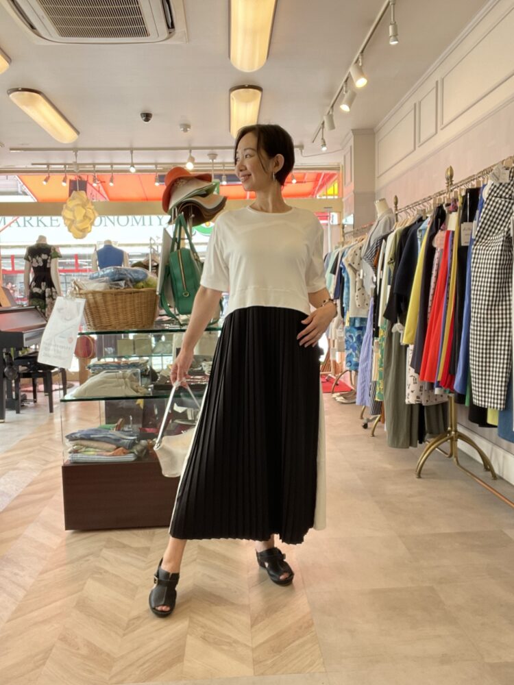 1.モノトーン配色プリーツ使いワンピース ¥17,380(税込)