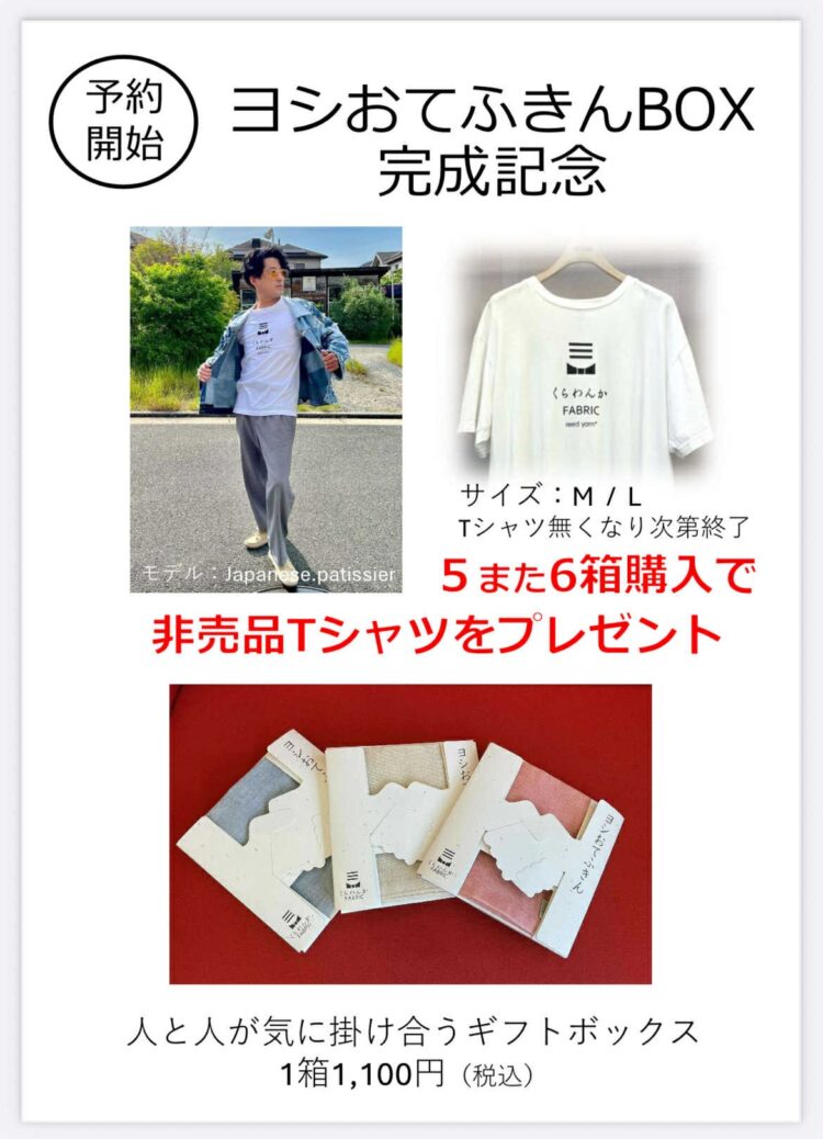 このおてふきんBOXを、5か6個購入頂きますと、非売品Tシャツプレゼント!