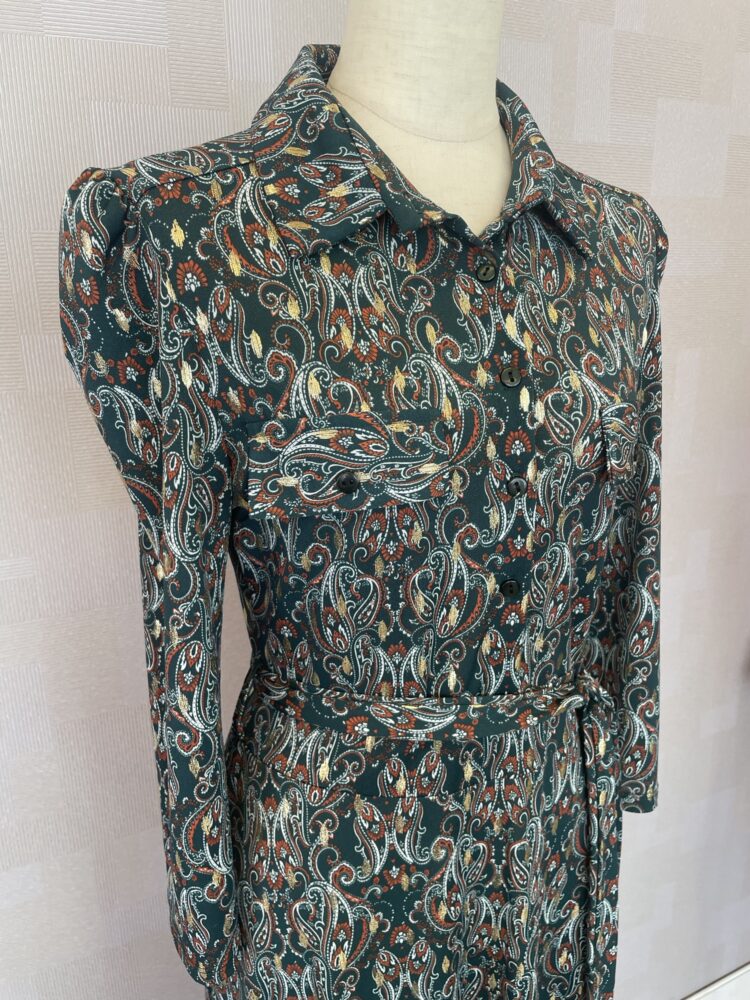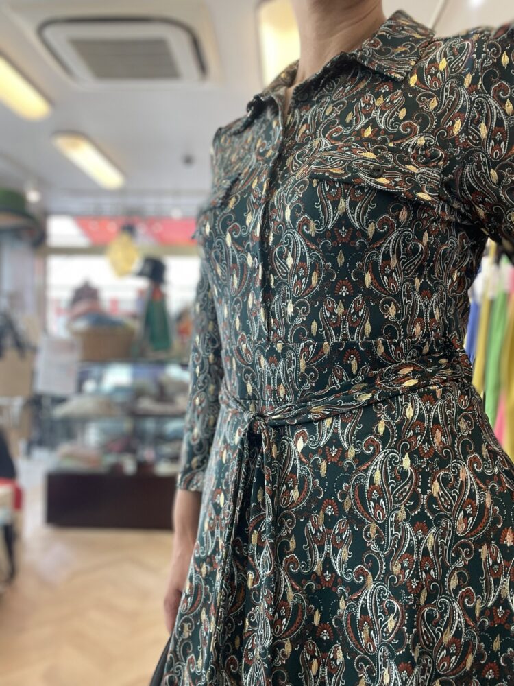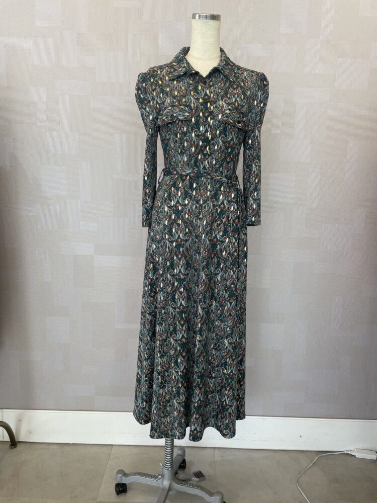 ゴールドがアクセントのペイズリー柄ワンピース
