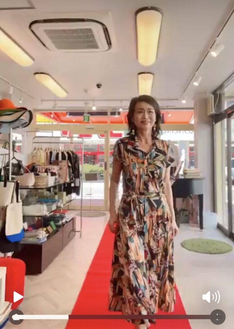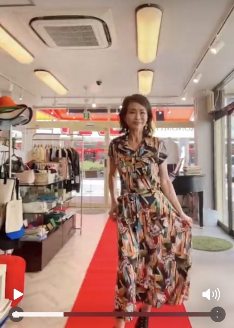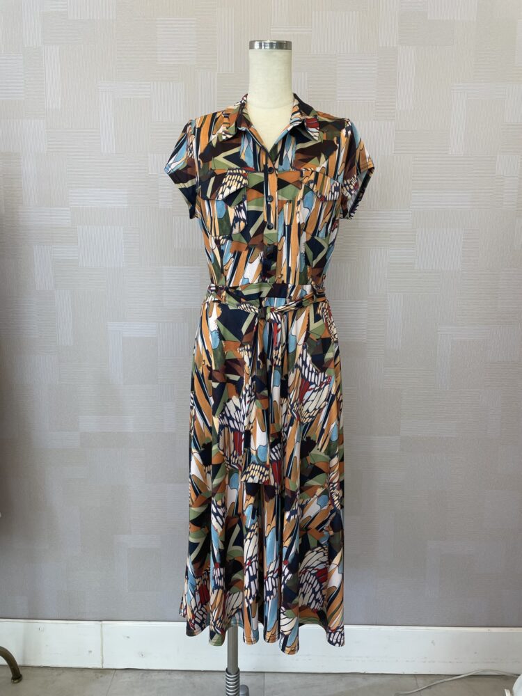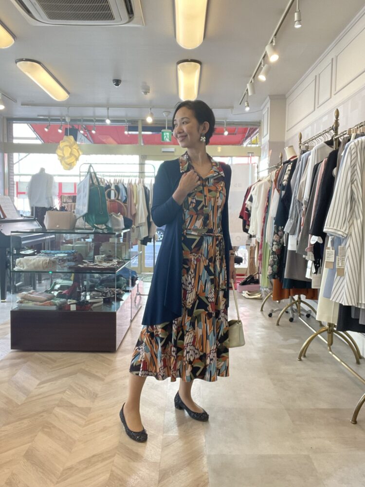 に着ていただいたのはフランス製の柄ワンピース