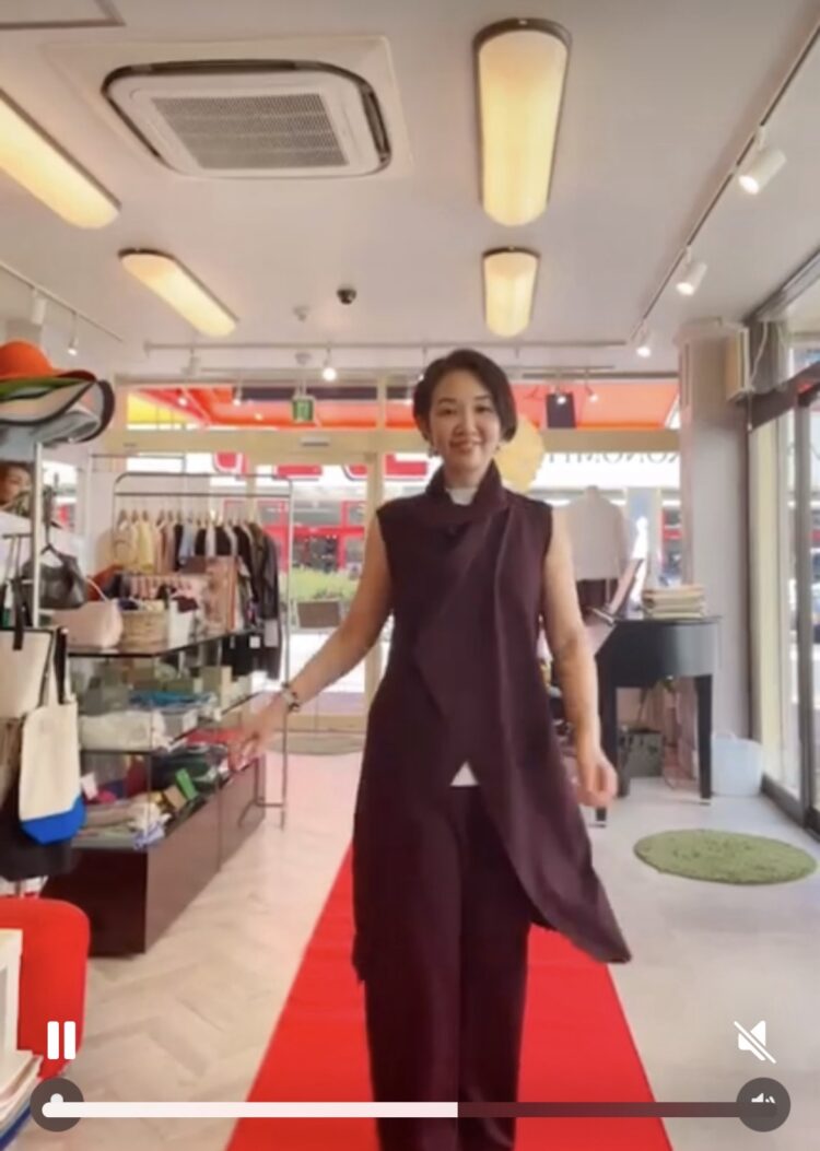 シルエットがきれいなジレのセットアップは縦長ラインですっきり見えです