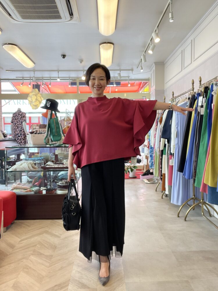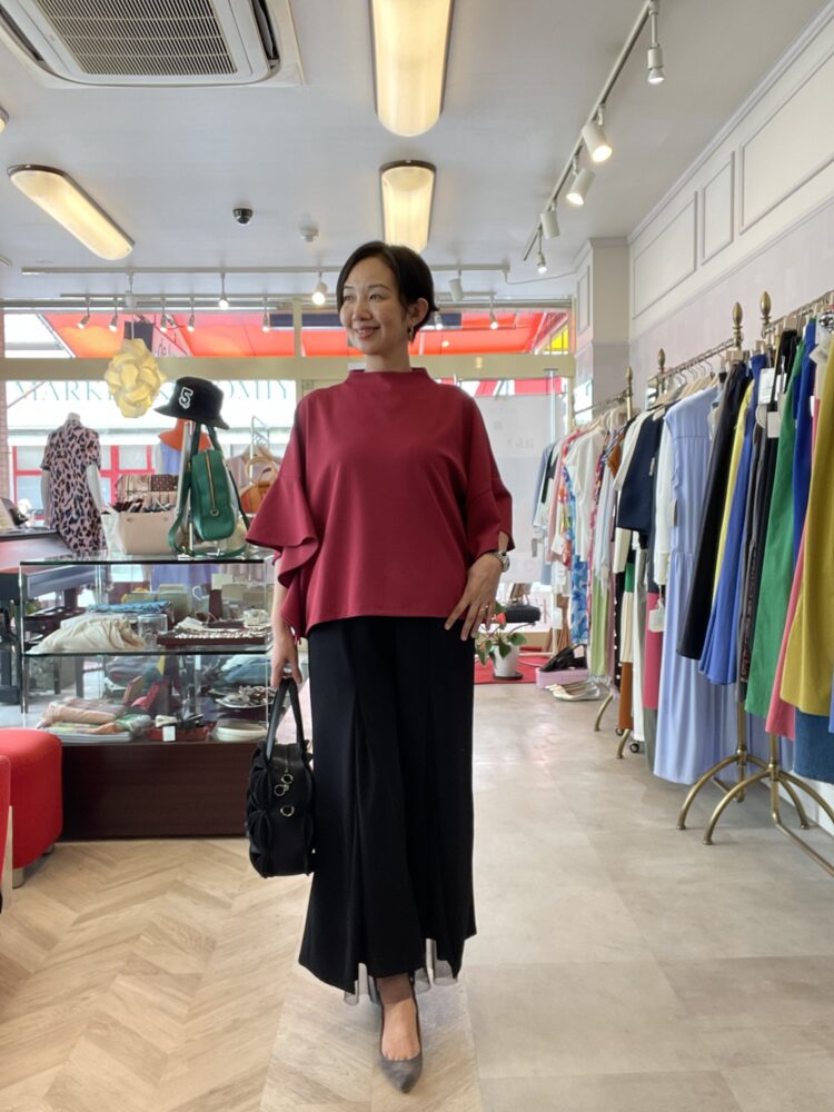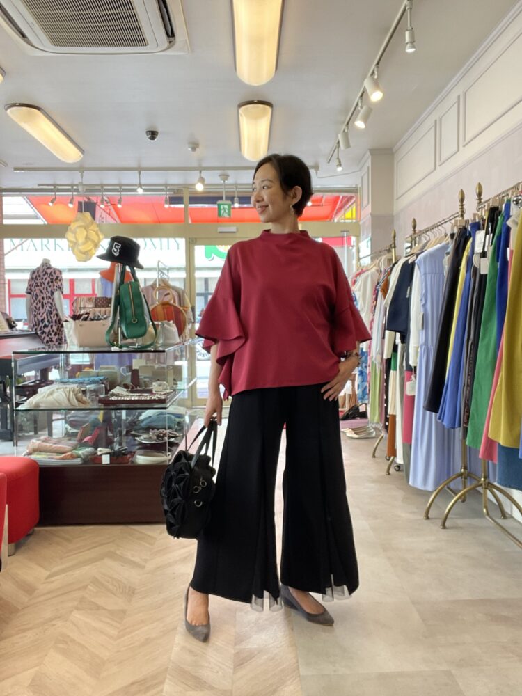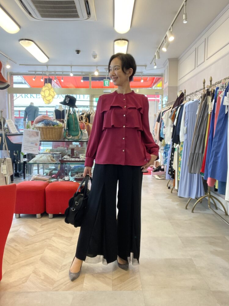 ◯ワインカラーの袖フリルブラウス ¥18,700