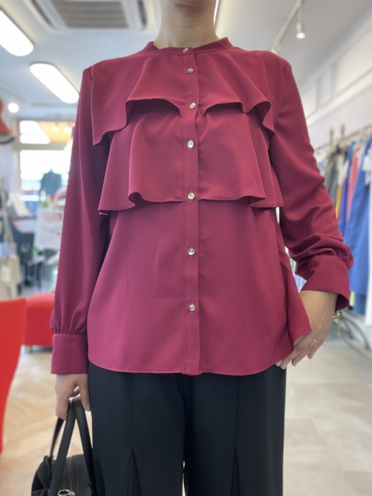 ◯ボルドーカラーの段フリルブラウス ¥18,700(税込)