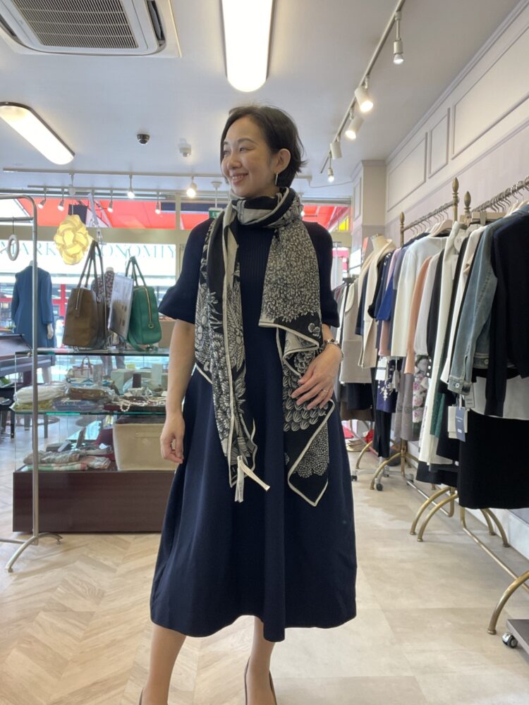 人とかぶらない、きれいなデザインのストールを選びます