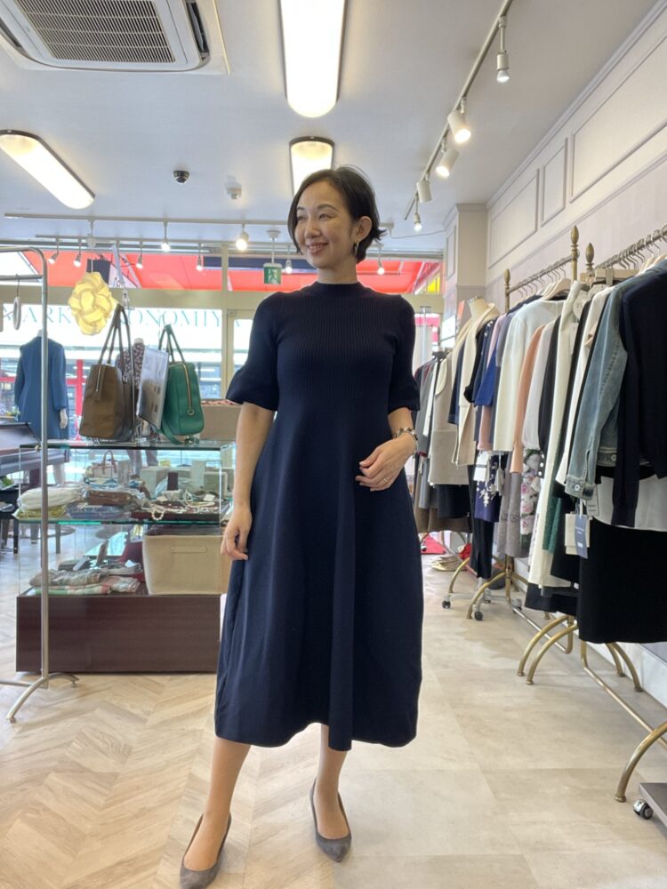 ネイビーのニットワンピース