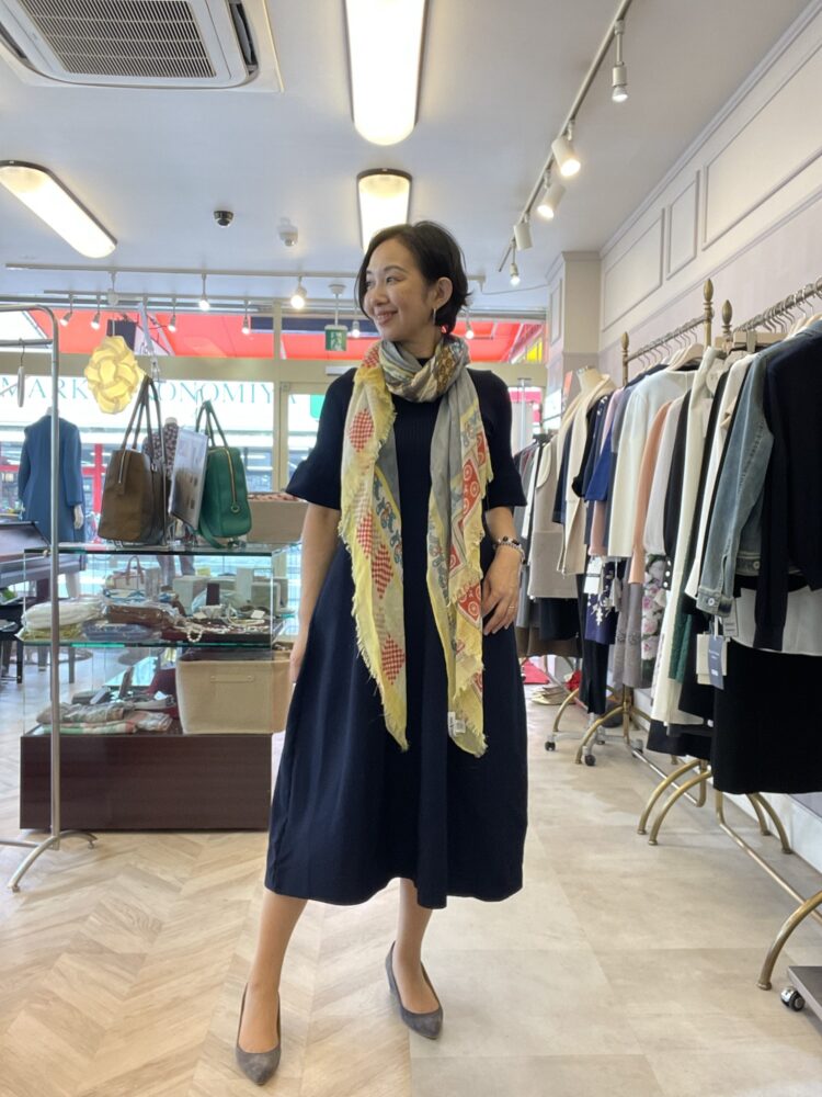 ストールを巻くと顔周り明るくなると思いませんか?