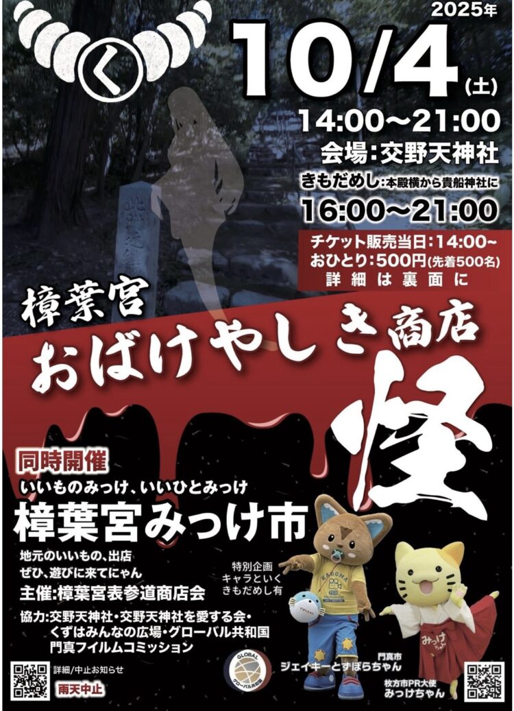 10/4(土)は交野天神社の「おばけやしき商店怪」に出店のため12時までの営業です