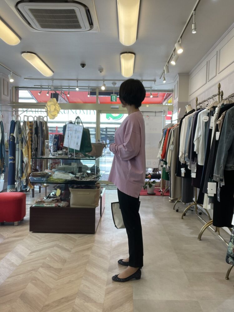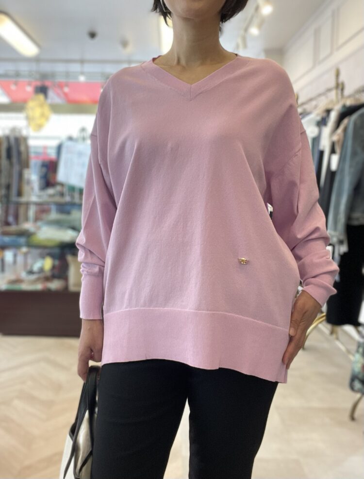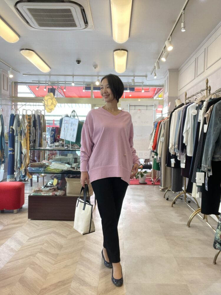 明るいピンクで気分も華やぐ、大人のリラックスニット