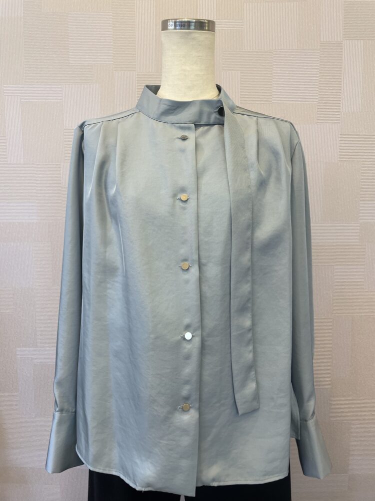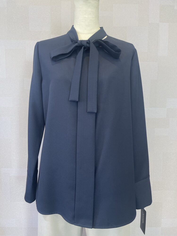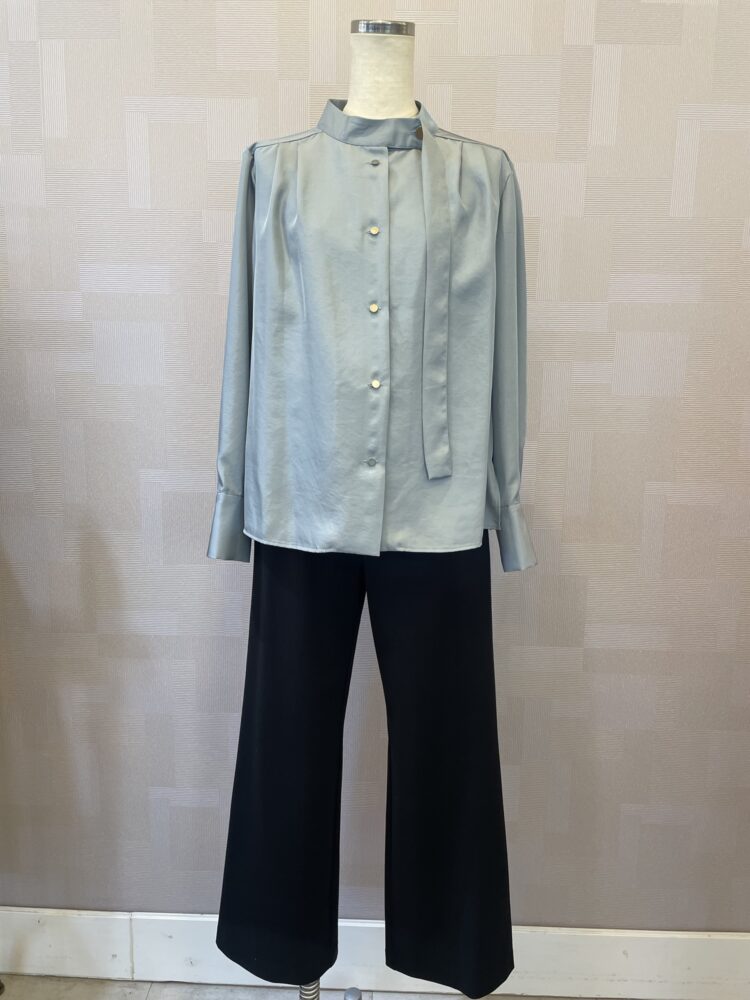 ◯光沢ボウタイブラウス ブルー ¥18,700