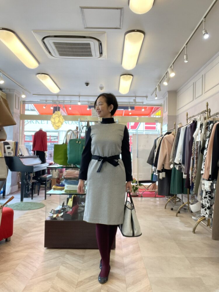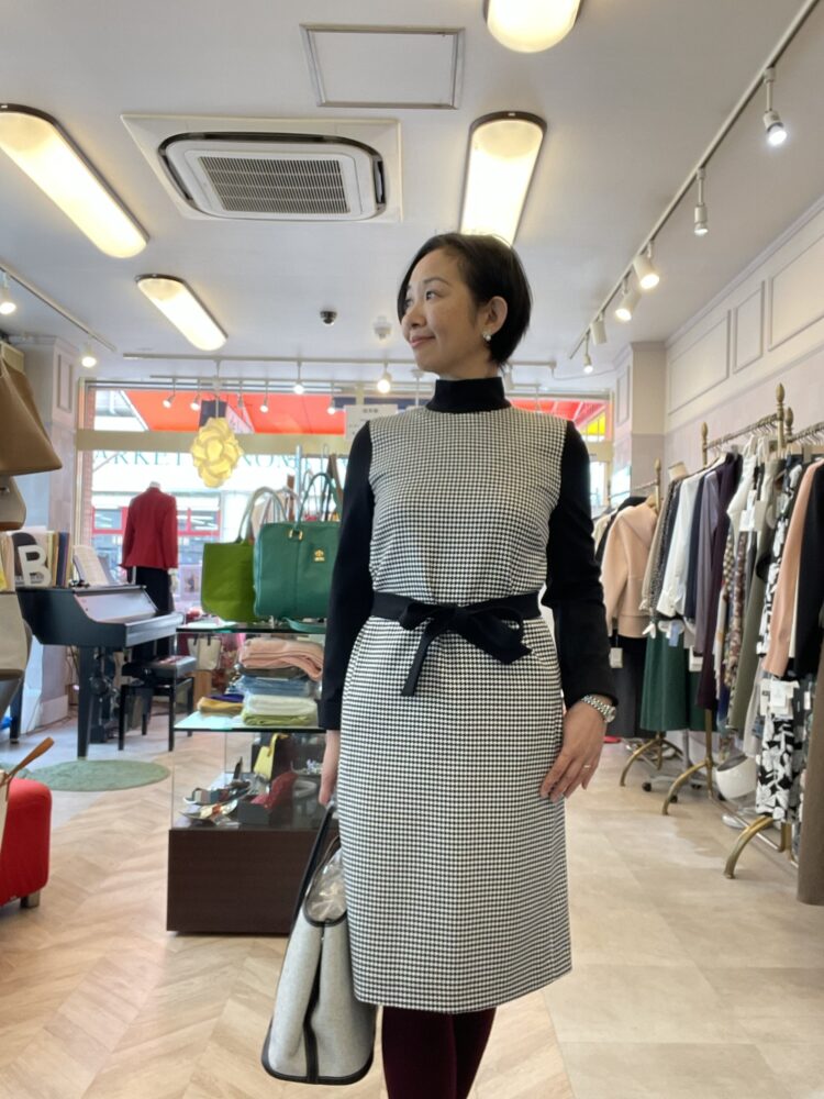 どこに着て行っても安心なきっちり感のある千鳥柄ワンピース