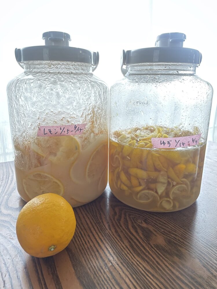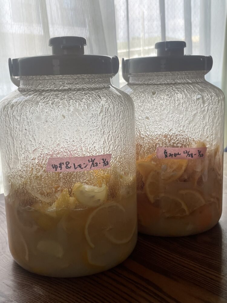 年末から無農薬の果物をたくさんいただき、発酵ドリンクをせっせと仕込んでいます🍹