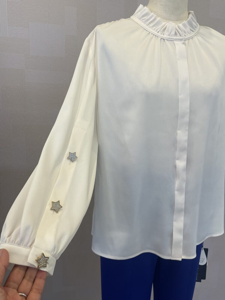 袖の星ボタンがきらりときれいなブラウス⭐️