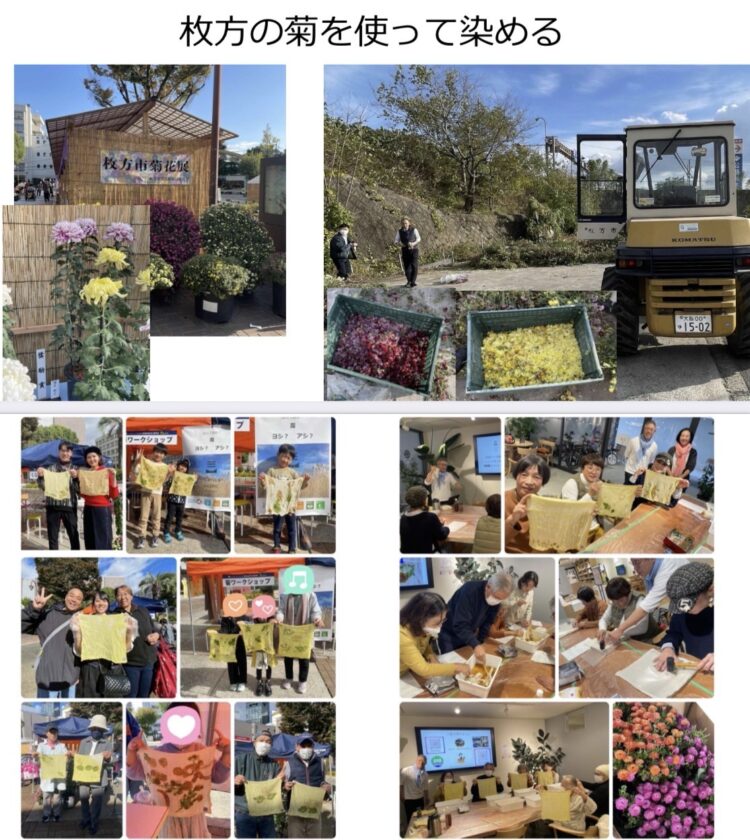 新商品開発: 枚方市の花「菊」 を使った草木染め体験ワークショップの開催。オリジナルパッケージ開発( 握手モチーフのデザイン)