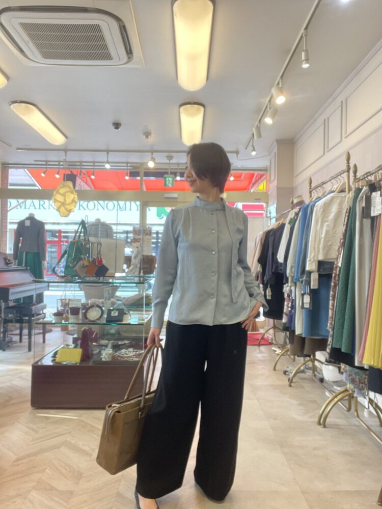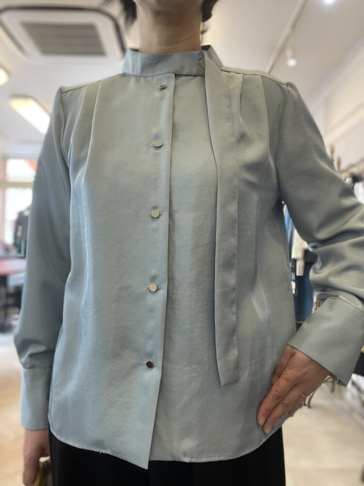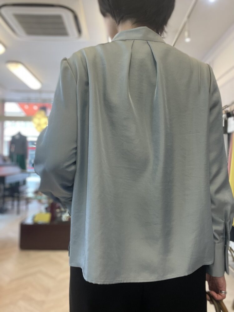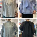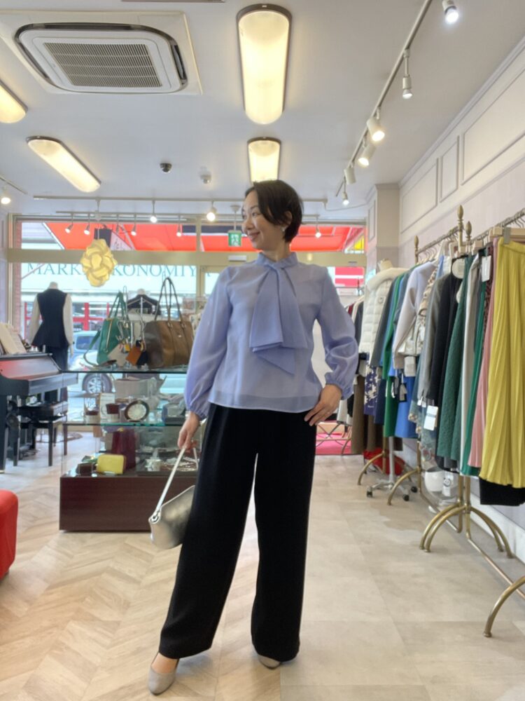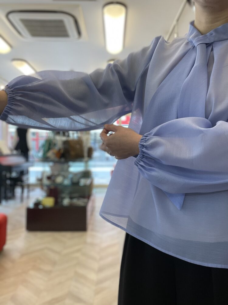 後ろの大きなリボンが華やかな印象のシアーブラウス