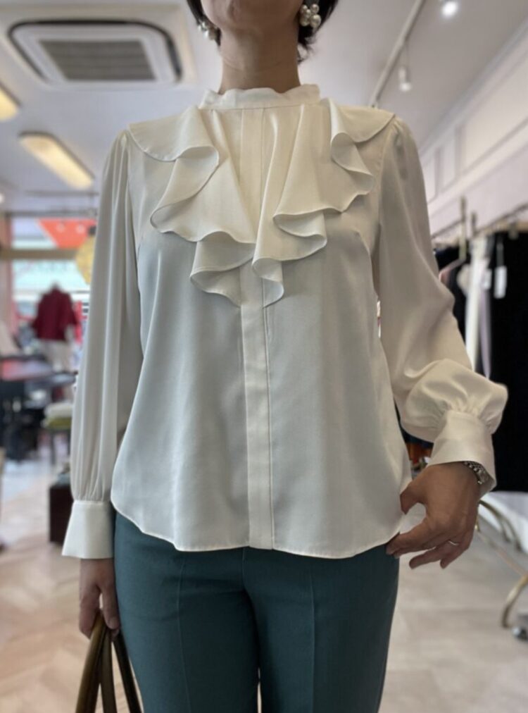 ◯大人のフリルブラウス オフホワイト ¥17,600