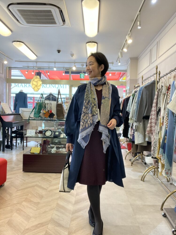 春コート+上質なストールの組み合わせ