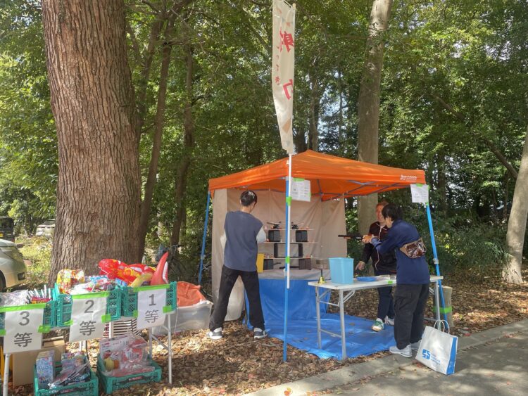 子供たちが射的で喜ぶ声